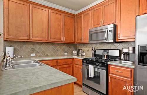 When hunger strikes, our sleek, fully-equipped kitchen answers the call. With top-tier appliances, including a handy dishwasher, and chic bar seating for four, it`s the ideal space for everything from morning coffees to dinner parties. If outdoor relaxation is your vibe, step out into our sunlit sanctuary, a tranquil setting for soaking up the Austin atmosphere.