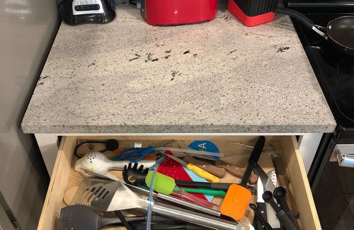 - Stainless steel appliances (large refrigerator, dishwasher, stove/oven, microwave)
