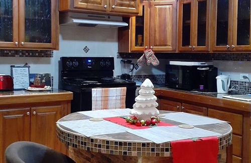 Guests will have access to a full kitchen with cooking utensils and cutlery. There is a dining area as well as a comfortable living room area with a 40" television, basic cable tv,netflix and wireless internet. These areas are fully air-conditioned.