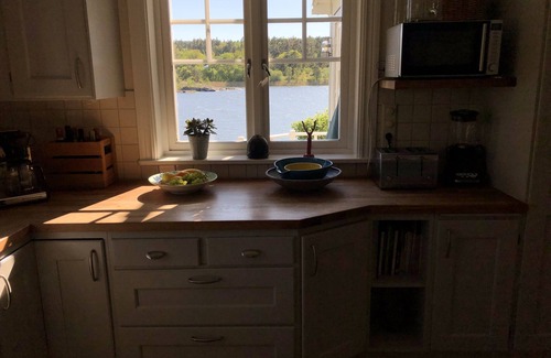 A very beautiful and functional house with own jetty for small and big boats. A “small” beach suitable for children very close to the house. The environment is quiet and calm with a fantastic view overlooking boats on its way in and out of the Stockholm archipelago. The house has lots of spacious areas for eating, relaxing or just sitting still watching the birds and boats on the water. A big kitchen with all the necessities such as dishwasher, big oven, espresso machine as well as traditional coffee brewer. Big fridge and freezer in the kitchen. Fireplace as well as a separate dining area closed to the kitchen. Overlooking the water is a big dining table where up to 22 people can dine together using the extensions. The house had 4 separate bedrooms with very comfortable beds, pillows, sheets and, cushions. 2 separate bathrooms one on each floor all with a toilet. One separate toilet on the ground floor. There are 2 different dining areas in different locations facing the sun as well as a separate space for a relaxed mid day break. A wooden terrace surrounds the whole house. The best view is seen from the lounge facing the sun set. Lots of comfortable deck chairs for relaxing around the house and on the jetty. A small boat is available, life vest as well in various sizes. Free wi-fi