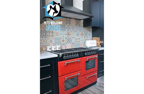 • Brand new kitchen with stainless steel appliances (and beautiful Belling red cooker and Smeg kettle and toaster!)