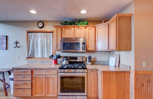The top floor of the home has two bedrooms; twin beds in one and a queen bed in the other, cable HDTV and walk-in closets. There is a full bathroom, and a sleeping loft features a versatile twin daybed with a pop-up trundle that creates a king bed. At the end of the hall is an office/Library offers a variety of books to read or enjoy the view of Bear Paw State Natural Area and its unique rock outcroppings from the private deck.