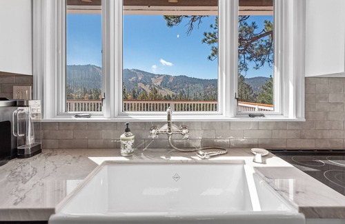 Ski Run Retreat is a beautiful, fully remodeled designer cabin with granite countertops, wood floors and log vaulted ceilings. Large deck with MAGNIFICENT views of the Bear Mountain Ski area. Large lot with lots of room to sled. This cabin is perfect for any season! Relaxing by the wood fireplace with beautiful views makes any vacation wonderful. Perfect for a romantic getaway, a small family, or a close friend's trip, Ski Run Retreat has it all!