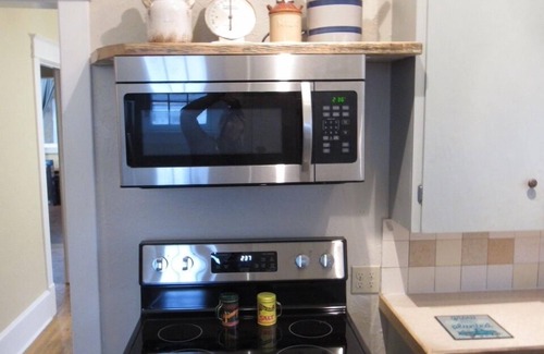 A charming 100+ year old vintage farmhouse, where history meets modern convenience. This home features three bedrooms and two full bathrooms. This home is ideal for any and all. While decorated as vintage this home will meet all your needs including wifi and smart tvs. The kitchen has all your cooking needs and a fully stocked coffee bar, and the dining room table is capable of becoming a table for eight with extra chairs in the room and an extra table leaf stored within the table itself.