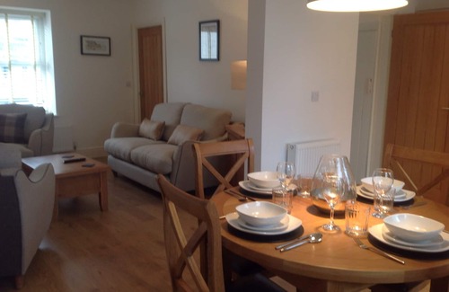 The cottage has two bedrooms - a very spacious master double bedroom and a cosy twin bedroom. There is a light and bright, comfortable, modern open plan living area -a lounge with a comfy sofa and chairs to relax in after a busy day exploring, a dining area with a stylish table and chairs and a well equipped modern kitchen. The property has a very spacious bathroom with both a bath and separate shower, basin and WC.. A washing machine is located in an outhouse and there is also another outhouse where bikes etc could be stored if needed.