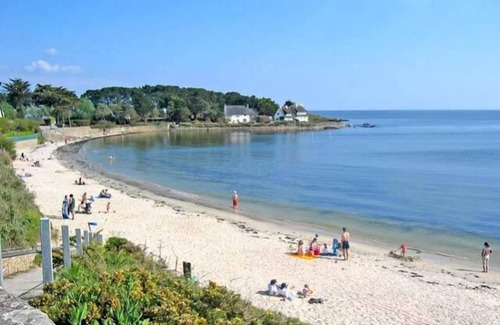 Chained Heart Cottage can also be rented with Bishops Well and The Coach House to accommodate 22 people. perfect for family reunions and large groups enjoying a holiday together. A log fire and central heating makes this an ideal location for Spring and Autumn breaks. The accommodation sleeps 8+ in four bedrooms. It consists, on the ground floor, of a spacious American-style well-equipped kitchen lounge/dining room featuring an attractive stone fireplace and master bedroom with en-suite bathroom (bath/shower) and washing machine. Upstairs there is a double and a twin bedrooms and a third airy bedroom with 3 "lits coins", traditional carved Breton beds. There is a shared upstairs bathroom with shower cubicle.