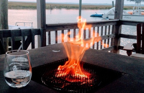 The property has a large dock with a swim ladder; attached to a large covered deck, that offers shade from the sun while enjoying the spectacular marsh views. The house has been recently renovated and updated with new appliances. After a long day at the beach, rinse-off in the enclosed, hot-water, outdoor shower before enjoying happy hour on the covered deck at the end of the 80 foot pier. Enjoy grilling (gas grill provided) and outdoor dining on the decks with incredible views. TV, cable, DVD, high-speed Internet. Two kayaks (2 single) are available for use. If you need additional space for larger families we also own the one bedroom 2 bathrooms with a queen sleeper sofa right next door.