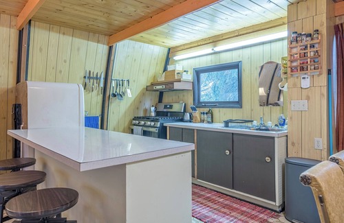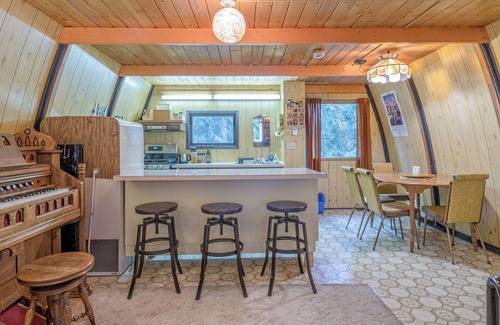 Walk in the front door to the main floor of El Pinal where you will find the cozy living room with TV, dining room and open kitchen with gas range and retro fridge. There is even a piano if you feel like serenading your guests!