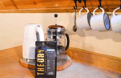 We also provide cooking spices and a coffee & tea station with all the works: Think a coffee pot, French press, coffee grinder, electric kettle, creamer, sugar, tea bags, and coffee beans from the local Northbound Coffee Roasters.