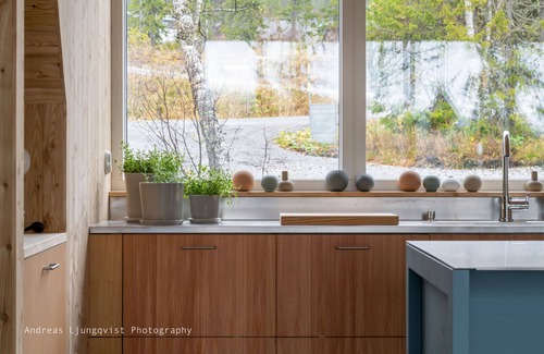 This one-of-a-kind vacation rental, known from TV-show Grand Designs, breaks away from traditional Swedish architecture and uses glass, larch wood, polished concrete, and ultra-modern furnishings to create a contemporary space like none other.