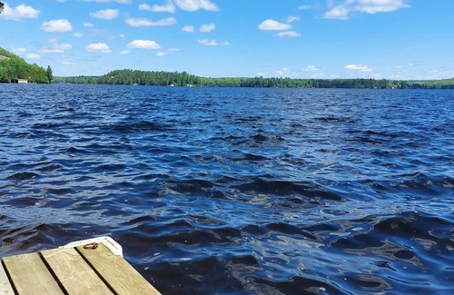 Welcome to Blandings Cottage on beautiful Lake Cecebe! We are located on a quiet road with 400 feet of water frontage. Guests will stay in our private boathouse living quarters, with two bedrooms (new queen-sized mattresses), a well-equipped kitchen and full bathroom. Large picture windows in the living/dining room give an expansive view the lake. A private sand beach next to the house is a perfect place for children to wade or play in the sand. There is plenty of room on the dock to sit and enjoy the view, go fishing or park a boat. Our property is well cared for, with gardens and lawns kept in top condition. The owner lives about 300 feet away in the main cottage, and is happy to help with anything guests need.