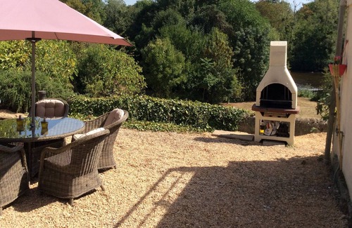 Riverside is exclusively yours and offers 3 en suite bedrooms, sleeping 7, (2 of the beds in the third bedroom are only suitable for children), lounge, kitchen/diner, utility room, 3 terraces on different levels, with comfortable seating, an orb chair, bbq, and an above ground pool. The large garden leads down to your very own part of the River Vienne. A perfect place to unwind and enjoy yourself, or fish. There are many birds to look out for and is perfect for stargazing as there is no light pollution, perfect place for watching shooting stars, there is a telescope for your use.