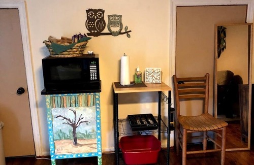 Two room, "upstairs" suite in Flintstone, GA which is a quiet, rural community located at the foot of Lookout Mountain and only a beautiful drive 10 miles from downtown Chattanooga; riverfront; TN Aquarium; Coolidge Park; lots of great restaurants, and many other outdoor sights & activities. Our place is a private upstairs unit, that is accessed through the main house (back door) but only a short distance to the stairs. The steps are very well lit with a hand rail but are a little steep.The unit can sleep three (queen bed and a twin bed), with off road parking and a well lit entrance. We provide water, juice, oatmeal and coffee for breakfast. There's a microwave, mini fridge, coffee maker, ice bucket, plates, silverware and even a corkscrew. Convenient to the Iron Man Course, Riverbend Festival, Fall Foliage Festivals, many bicycle races, Ironman, UTC, Covenant College and several popular barn wedding & events venue. There's also LOTS of live music venues.