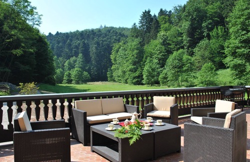 The saint mill is a tastefullly renovated watermill located in a Valley surrounded by forests.