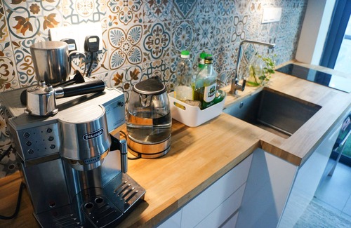 You will find amenities just like what you'd find at a home. High speed internet is included. Hot shower, shower gel, hair dryer, ironing board and iron, 2 fresh towels and floor mat, closet, clean sheets, down-filled high thread count duvet, down-filled pillows, full length mirror, microwave, DeLonghi coffee maker (yes we provide ground coffee), kettle, fridge, induction stove suitable for light cooking (we provide basic condiments), cooking utensils and kitchenware, TV, and over 150 book titles to enjoy.