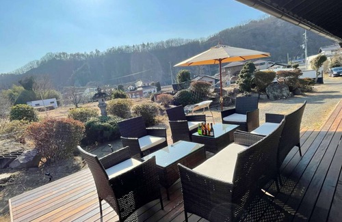 New floor heating, toilets, and baths.Winter is also cool.There is also a steam sauna in the glass-walled public bath.Pets are allowed in the living room on the floor.BBQ on the wood terrace and a large supermarket at the back.