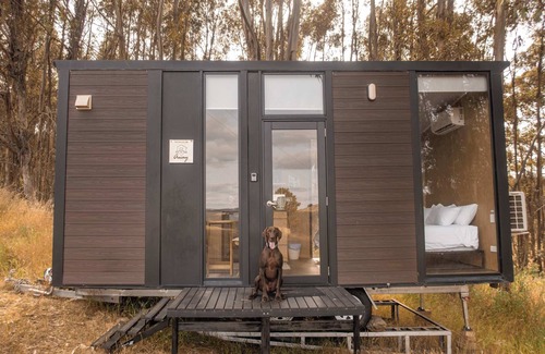 This tiny home is perched on the edge of a serene blue gum forest, offering stunning views of the expansive pine forest nearby. It's one of the best holiday homes in Western Australia, located close to towns like Balingup, renowned for its Annual Medieval Carnivale, held on the last weekend of August. In addition to this event, Balingup offers local cafes with excellent coffee and a welcoming atmosphere.