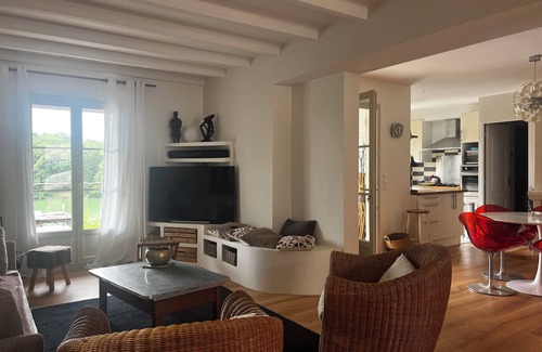 Very nice house on the lake of 160 M2 where life is good including 1 large living room of 60 m2, a large terrace with view of the pool and the lake, 5 bedrooms and 2 toilets; On the lower floor you have 2 large bedroom with large bathroom and toilet and a very large room very nice and very cool in the summer. The house has all the openings to the pool and the lake (bathroom window), it is south facing. The pool area is shaded, you have a very large teak terrace of 200 m2, the siesta is very pleasant ...