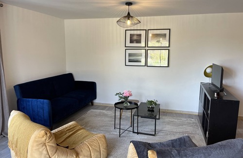 Prepare a home-cooked meal in the kitchen, complete with an oven, a stovetop, and a refrigerator, as well as a coffee maker, an electric kettle, and a microwave. Connect to the free WiFi, or get cozy in front of the TV. Bathroom amenities include towels, toilet paper, and soap. Other amenities at this 2-bedroom, 1-bathroom rental include a living room, bed sheets, heating, and a dining table.