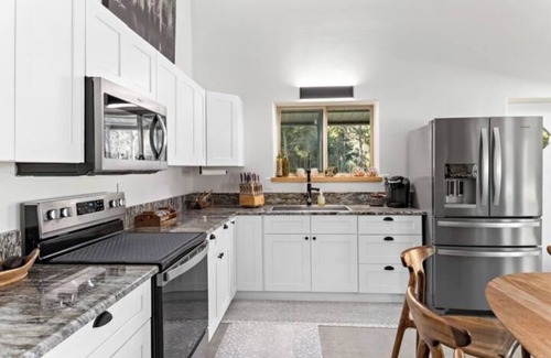 Our newest bardo is a spacious and inviting retreat, perfect for larger groups looking to immerse themselves in nature. With room to sleep 18 guests, the cabin features 4 cozy bedrooms and 3 well-appointed bathrooms, providing comfort and convenience for everyone. A luxurious hot tub invites guests to unwind. Whether enjoying quiet mornings with coffee, gathering for evening conversations or enjoying the wildlife, this secluded getaway promises privacy and a peaceful connection to nature.