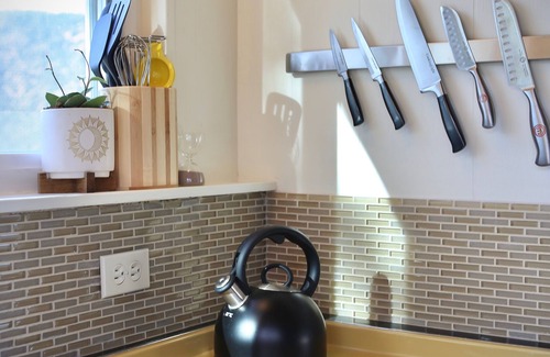 - Full kitchen with coffee maker, toaster, Brita water filter, microwave, oven, mini waffle maker, water kettle, blender, but (no dishwasher).
