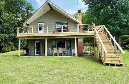 While staying at our cabin, fish from our private pier (only small fish in there right now!) take the paddleboat for a cruise around the lake or relax on the deck while you take in a breathtaking northwoods sunset. This clean and comfortable 2 bedroom/1 bath, 1,450 sq foot home sleeps up to 6 and comes with consistent wireless internet, Apple TV and Roku, adult bikes, books, puzzles, board games, kid friendly DVDs and the amenities you need for a relaxing getaway.