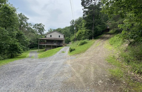 Location, Location, location! Enjoy the seclusion of Breezy Valley while still being close to everything Raystown has to offer. Walk a half mile from the top of the driveway down to the lake to swim, fish, & kayak or drive 3 miles to the James Creek boat launch & put your boat in the water! Breezy valley is a spacious, three-story home on 3 acres of woods surrounded by state game lands. Please note: the turn off of Clappers Run onto Oakwood is pretty steep and contains only gravel. Boat trailers have made the turn as well as large trucks. The first-floor layout is open concept featuring a cozy living room with a wood burning fireplace, fully equipped kitchen with a peninsula, and a high-top breakfast table that seats 4. A King master suite with a jacuzzi tub, a half bath, and a laundry room is also located on the first level. The second floor boasts a King bedroom with work desk & TV, 2 large Queen bedrooms, and a double bed with a pull out single. There is also a full bath with a shower/tub combo on this level. NEW this year, is a fully finished basement featuring a pool table, sitting area with large TV, table that seats 6 for games or an additional eating space. Outside you can relax and enjoy nature while sitting on the wrap around covered porch, having a campfire at the fire pit, or cooking dinner on the 3-foot Blackstone (propane provided). Trough Creek State Park and Raystown resort less than five miles away. Many other attractions are all within 5-10 miles in any direction. Escape to the woods & recharge at Breezy Valley!