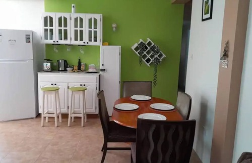 We make it personal! Get comfortable and enjoy majestic views at this spacious Hilltop villa, overlooking an orchard with endless fruit bearing trees; including Mangoes, Soursop, Coconuts, Golden Apples, Five-fingers etc. The night skies are perfect for stargazing and the neighborhood offers endless conveniences. Be enticed with a luxurious king size master en-suite w/ individually controlled AC and blackout curtains for a good night's sleep. The 2nd bedroom has a double bed, verandah access, fan & an updated bath with all needed amenities. Hot & Cold showers available in baths. Kitchen is fully equipped w/ plenty of extras for meal preparation. A large verandah overlooking an abundance of fruit trees; all for your enjoyment and private parking with gated access. European electrical outlets & 120 V access.