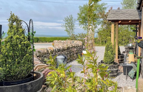 Shower Room: Walk-In Shower, Toilet. Electric central heating, electricity, bed linen, towels and Wi-Fi included. Welcome pack. Front garden with garden furniture and electric outdoor cooking grill. Private parking for 2 cars. Electric car charging point (at cost, payable directly to owner). No smoking.. A picture-perfect property to spend your well-deserved break. As you drive up to Little Pines Lodge the first thing you will notice is how pretty it is. A dry-stone wall surrounds the front of the property with the exterior of the property cladded and the location making the most of the fabulous nearby rolling hills. Enter this thoughtfully converted space and you will discover vaulted ceilings, quirky bespoke furniture, and kitchen along with quality soft furnishing and a real eye for interior design flowing throughout the property. Enjoy the open plan feel of the lodge which boasts a cosy double bedroom perfect to relax after a busy day. A well-designed walk-in wet room really adds style to this property. The separate living/kitchen/dining area has patio doors leading to the private outdoor space where there is an electric outdoor cooking grill. Venture outdoors and you will be greeted by a landscaped seating area with comfy sofa and chairs a great place to grab a bottle from the fridge and make the most of the sweeping rural views and lose yourself in nature.