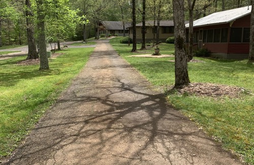 The cabin sits on 38 gated wooded acres with 6 other rentable cabins. Adjacent to this property is our 700-acre farm, where we have a stocked pond for fishing and 6 miles worth of hiking trails through our beautiful woods all for your enjoyment.