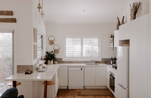 The cottage boasts cathedral ceilings with open plan living giving a sense of spaciousness with the purr of the ocean in the background creating a relaxed you're on holiday feel. It has a fully equipped kitchen, outdoor door Weber BBQ, separate king bedroom, modern bathroom and laundry, comfortable lounge and dining areas with wrap around verandahs to entertain on or while away a lazy afternoon. You're spoilt for choice with numerous coffee and dining options within a 5 walk from your front door.