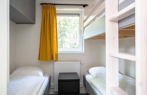 This beautiful Boslodge is very luxurious and fully equipped for 5 people (advice 2 adults + 2 children because of bunk beds). Vakantiepark De Thijmse Berg is the perfect location to get away from it all with the whole family. The Boslodge is equipped with 2 bedrooms, 1 master bedroom with a double bed and 1 triple bedroom with a bunk bed and an additional single bed. The Lodge has a spacious bathroom with walk-in shower and toilet. The kitchen is equipped with: Nespresso coffee machine, kettle, combi oven, fridge freezer, gas stove, various kitchen utensils and pan set.