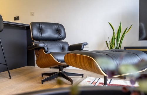 Gallery Apartment is the ground floor apartment of this development and has been very thoughtfully appointed. The living area has a fully fitted kitchen with everything that you need, including plenty of storage space for all the tasty treats that you buy when you are out and about exploring. There is a dining table that comfortably seats 4 people. There is then a spacious, comfortable seating area with a sofa and Retro Eames Brown Leather Lounge Chair and Footstool, where you can sit back, relax and enjoy your time in the living area. Whether its sat in front of the smart TV enjoying a film or a catch up on the days events, you will all have plenty of space to relax.