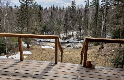 Ok, so the mighty Crown Creek is not a river but the power of the rapids cascading through this property truly is mesmerizing. This 10.5 acre property consists of a one bedroom and one bathroom log cabin over-looking the Crown Creek. Trout fishing in both the Crown Creek and the adjoining Baptism River is excellent. The log cabin was just COMPLETELY renovated and everything in it is brand new. Quartz counter-tops and a copper sink highlight the new kitchen. Please view the YouTube link for more. Snowmobile and ATV trails are accessible right from the property with no need to trailer. End your night with a bonfire and smores overlooking Crown Creek in your own private setting. Please note that there is a security camera on the outside of the property.