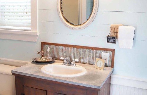 Escape to Tara Farms, a secluded countryside bnb just 2 miles outside town. This romantic one-bedroom farmhouse offers serene tranquility, rocking chairs on the front porch, and beautiful landscaping. Enjoy wildlife-filled fields, complimentary Wi-Fi, air conditioning, a cozy coffee bar with snacks, and create cherished memories in this idyllic retreat.