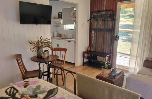 Step inside and there you will find the stunning iron queen size bed draped in luxurious linen which will give you a relaxed feel and great nights sleep. There's a comfy couch to sit whilst playing a game or two or to watch a movie on Netflix. If you feel like a night in there's a gorgeous little kitchenette offering a microwave, air fryer, electric fry pan and of course no home would be complete with out the aussie BBQ sitting on the deck. There's a full bathroom which includes a corner shower, toilet, porcelain vanity, towels, beautiful Al.ive shampoo, conditioner, body soap, body lotion, the bathroom also has a hair dryer, iron and table top ironing board just incase the local Hotel calls you! Weather permitting there is a rustic fire pit that is surrounded by a gorgeous native garden. With the sounds of nature right at your door step, why would you want to be anywhere else. There is ample car parking right at your door.