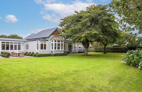 30 minutes from the bustling hub of Christchurch city, Rangiora is the gateway to an amazing array of outdoor activities including jet boating, canyoning, hiking, tramping, cycling or you can relax in one of the local spas, wineries. Maybe a game of golf combined with a winery tour is on the agenda. With all amenities on the doorstep, boutique shopping, local restaurants and movie theatres all within walking distance. This timeless villa is a serene retreat from the hustle and bustle, boasting four fantastic bedrooms, all with direct access to the wrap around verandah and beautiful gardens. There is family dining in the kitchen which seats 8 comfortably. With a casual lounge area and a separate living room, this home gives you the ability to spread out, relax and enjoy. There's a pool and ample off street parking. A fully equipped kitchen provides all the basics you need for your stay and the main bathroom features a full size French tub.