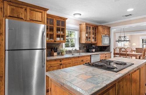 - Fully equipped kitchen with full sized appliances + a regular/Keurig combo coffee maker. No ice maker, but we do provide ice trays