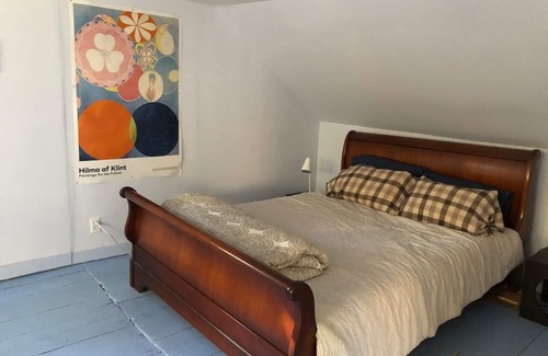 The house is perched on a slope over a pond on 10 acres with a dirt road in the front and conservation land in the back. While it is quiet it is not entirely remote: our home is close to the center of the town of Worthington in the Berkshires, 30 min from Northampton, 2 hours from Boston and 3.5 from New York City. Nested in nature, the property abuts looping trails that will take you through the woods from green lush summer to multi color fall, to winter when snow covers the hills. You can actually ski out the back onto to what used to be cross country trails, most of which are still skiiable. This is a mountain wetland and the Fall season with the diversity of trees and strident colors is particularly spectacular.