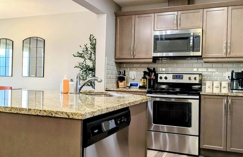 Enjoy a peaceful getaway alone or with family and friends! This welcoming and beautiful home comes with a fully equipped chef's kitchen, BBQ, and 3 spacious bedrooms. Enjoy the convenience of an onsite washer and dryer, so you are ready for your next adventure. Ample parking is available in the garage, driveway, and on the street. Conveniently located near shopping and Calgary airport, and within 1.5 hours of must-see attractions. Book your short or extended stay today!