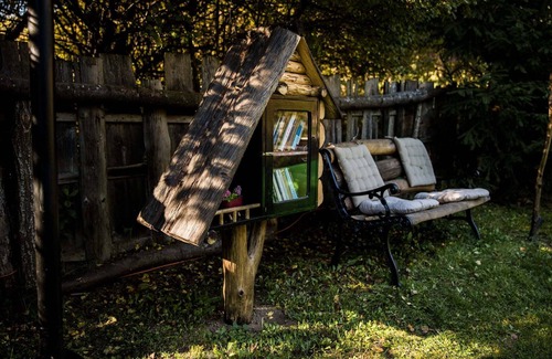 Biblioteca exterioara face parte si ea, de asemenea din acest proces, unde iti poti alege cartea preferata si pe care apoi ai posibilitatea sa o lecturezi atat pe banca naturala din vecinatatea ei, cat si langa semineu, alaturi de un pahar de vin si cateva lemne care trosnesc pe fundal.