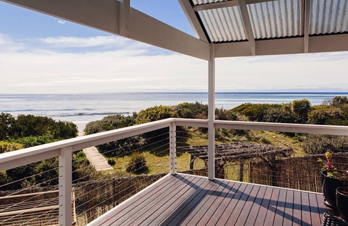 A stunning house right on the beach in a quiet and relaxed seaside location. The passive-solar designed house captures the sun all day long. Look out to sea from the kitchen, dining and living areas and just walk out the large sliding doors to take in the views, or sit back and relax on either of two north-facing outside decks. The sunsets over the water in the evening are spectacular! You can almost reach out and touch the ocean, and a stroll along the beach is only a few short steps away. The 'Beach Break' house features a fully equipped kitchen with modern appliances and spacious dining and lounge areas. Off the master bedroom is a luxurious bathroom with twin vanities and a walk-in shower. Step down into a private atrium which features a large bath. There are three more bedrooms, the main with a queen-size bed, a single bed and room for a portable cot. The two other bedrooms have two single beds in each with built in robes - these areas are serviced by a separate bathroom. A large laundry has a washing machine and clothes drier. Quality linen is supplied including beach towels and ironing facilities. Enjoy the outside entertaining within the landscaped gardens, adding to the wonderful seaside atmosphere. There is also a Weber bbq to make cooking a breeze, whilst enjoying the amazing view. There is secure off street parking and a fully fenced backyard leading to the beach