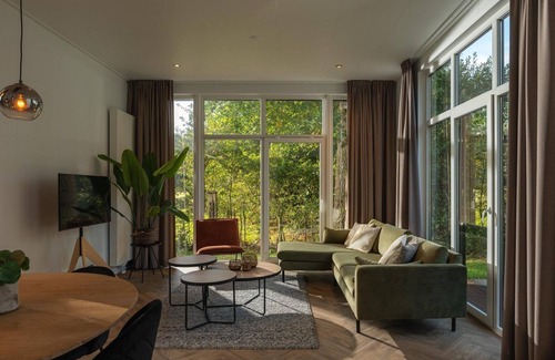 Lovely holiday home right next to the meadows of Twente! This accommodation is luxuriously furnished and has a beautiful view. This Nature Cabin has a spacious living room and 3 bedrooms. The master bedroom has a luxurious 2-person box spring bed. There is also a bedroom with 2 single beds and a bedroom with a bunk bed. The bunk bed is suitable for children up to 12 years old. Outside is a luxurious spacious garden with lounge set where you can enjoy nature, you walk through the doors so to. From the cabin you look out over the fields of Twente. Enjoy to the max. Being free in Twente.