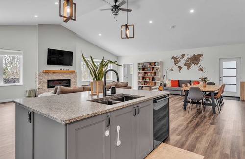 With 2300 sq ft of single level living space, the property offers three bedrooms, two full bathrooms, heated floors throughout, double attached garage with EV charger and all the amenities you need for a relaxing and refreshing stay.