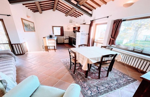 Casetta nestles in the midst of Spoleto Country Park. Just a 2 minutes stroll to the pool, its patio/terrace and garden overlooks mountains and valleys, woods and thickets, a colourful patchwork of glorious Umbrian scenery, set against a deep blue sky.