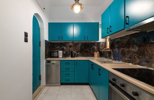 The house is located in the middle of the old town, 700 meters from the port and less than 1 km from the center of Rhodes. The airport is 15 km away. All restaurants, taverns, bars and clubs are within walking distance.