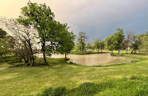 A perfect rustic spot to make memories for the eclipse in Waco, TX. In the country but still close to everything Waco has to offer. Our pasture has a stocked pond, outdoor potty, cornhole, and more! We are located 8 minutes from Baylor’s campus on 4 acres of wide open pasture. Bring your tent and enjoy the outdoors including shade trees, views of the pond, picnic tables and community fire rings. This spot is far enough away from the festivities downtown but close enough to check out the fun!