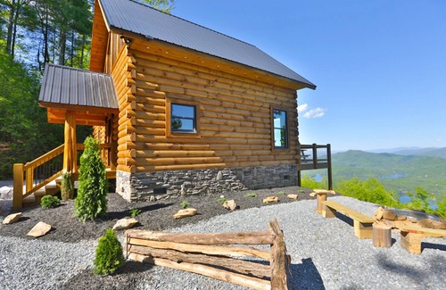 Just off the main road you will see a welcoming gateway to your left that will take you up a short gravel driveway to your cabin, Ahh..Mazing Views! Appropriately named, this cabin sits dreamily atop the mountainside overlooking Fontana Lake and the Smoky Mountains. The views from the exterior will immediately captivate you and have you feeling like you are on top of the world! Adjacent to the front door is a stunning stone fire pit in the yard surrounded by beautifully carved log benches perfect for roasting marshmallows and soaking in the amazing views. The backside of the cabin has a wonderful deck that showcases the views even more and is equipped with a gas grill along with ample seating options including a picnic table and a set of comfortable adirondack chairs. One of the best features of the cabin is the hot tub, also located on the deck, that perfectly frames your picturesque surroundings. There is nothing better than a relaxing soak enjoying panoramic views after a long day of adventurous excursions or sightseeing in the area!