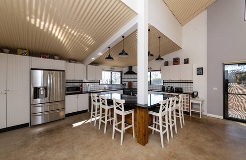 Inside, The Barn is fully air-conditioned for your comfort during the warmer months, and we've got an open fireplace and electric blankets to keep you cozy when it's chilly outside. Our chef's dream kitchen is fully equipped with everything you need to cook up a storm, and our large lounge and living areas are perfect for curling up in front of the fire with a good book or movie.