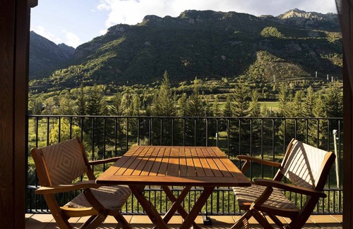 A high quality apartment for a perfect stay in the residential Linsoles, only 2km from Benasque and 10 minutes from the ski resort of Cerler. It has 2 rooms at the bottom and another at the top. One with a large double bed and a built-in wardrobe, a large sleeping space with two windows and two Velux that give it great luminosity. The second room with two single beds, nest type and built-in wardrobe. The full and very spacious bathroom at the bottom. The third room located at the top has two beds that can be closed and enable the space as a place of relaxation, independent of the living room below. Well, it has a television, two seats and a table for our leisure time, reading ... Also at the top we have another full bathroom.